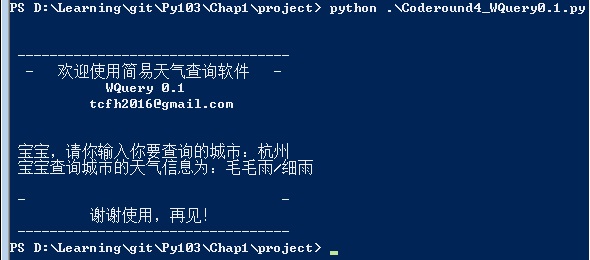 print u" 输入<城市名称> 查询城市天气 ".encode(encoding_type)