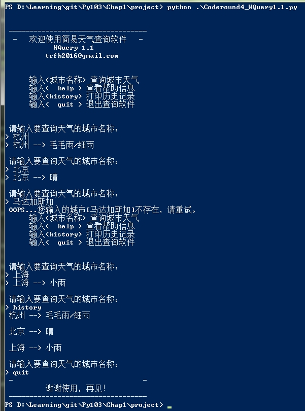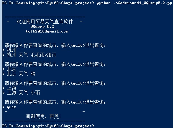 用户在查询一个城市之后需要再次运行程序来查询其他城市,为了支持循环查询,需要根据用户输入的指令完成更多样化的查询功能。